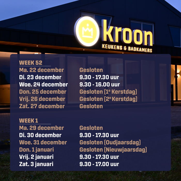 Bij Kroon Keukens & Badkamers denken we graag met je mee! Of je nu een compleet nieuw ontwerp wilt of een kleine aanpassing, wij helpen je om jouw droomruimte te realiseren. Maak vandaag nog een afspraak voor een persoonlijk adviesgesprek of kom langs in onze showroom en laat je inspireren door de nieuwste trends en mogelijkheden.