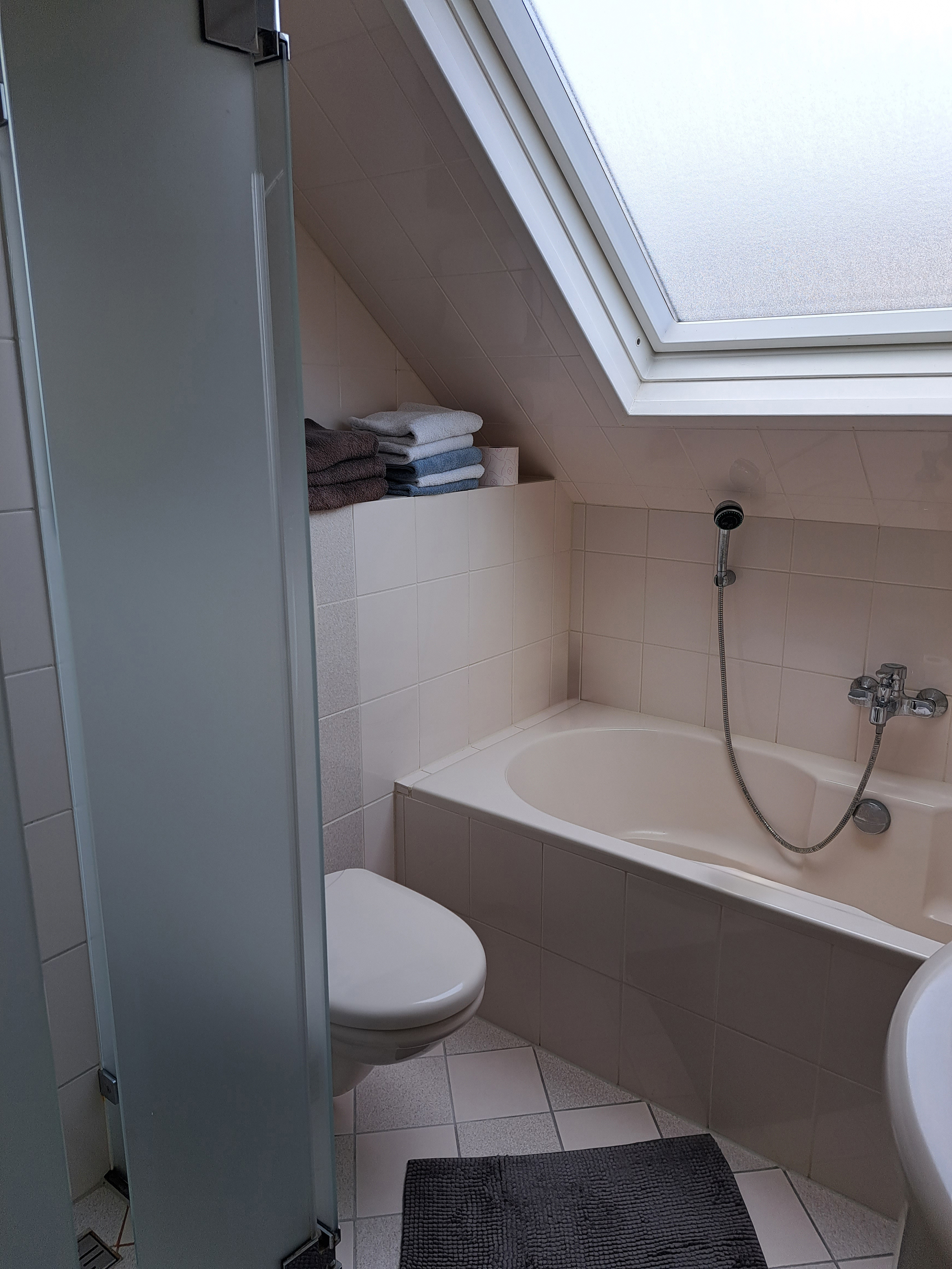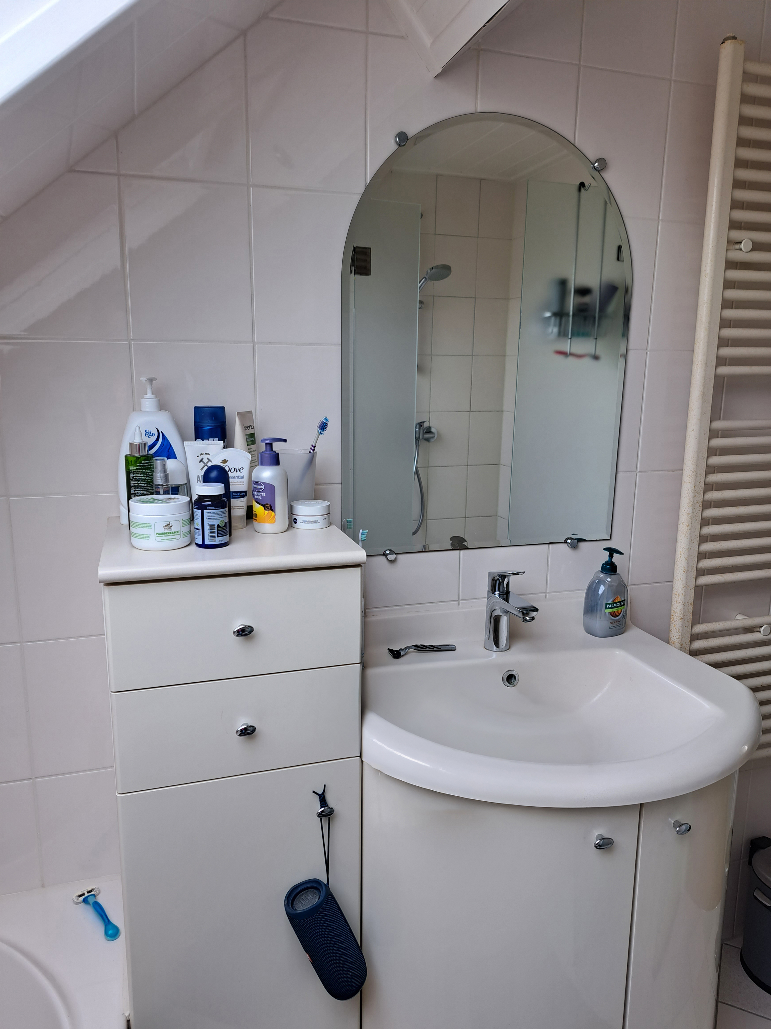 Voor dit project werkten we nauw samen met Bouwbedrijf Hollands Kroon om een compacte badkamer te veranderen in een lichte en comfortabele ruimte. De plaatsing van een dakkapel brengt extra licht en hoogte in de badkamer, wat direct zorgt voor meer ruimte. Ook werd er een muur verplaatst voor een meer praktische indeling.