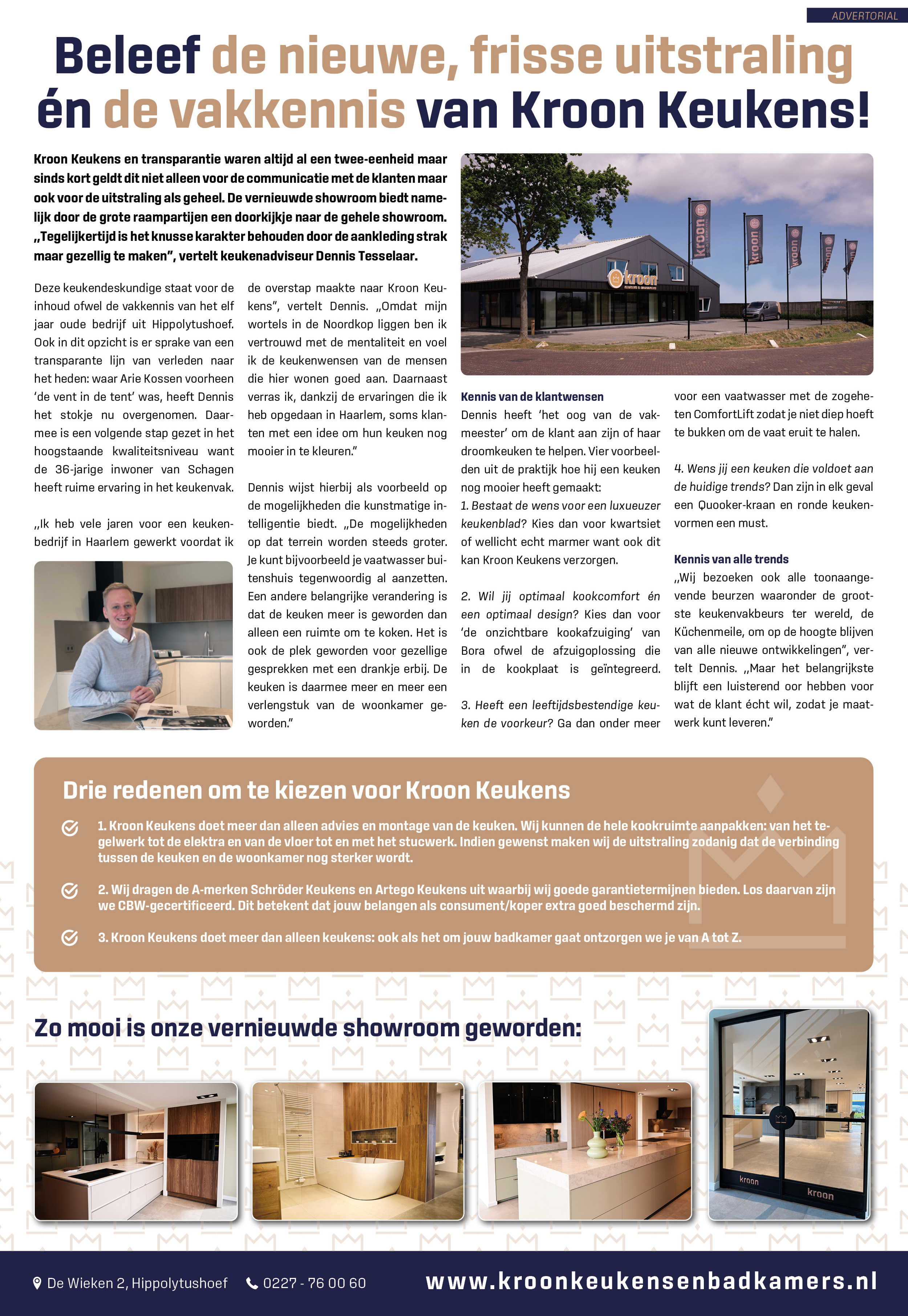 Wij hebben vorig jaar de showroom volledig vernieuwd. Heb jij ons nieuwe visitekaartje al gezien en ervaren? Kom gerust eens langs voor een stuk inspiratie en informatie over een nieuwe keuken en/of bekijk de advertorial die op de achterpagina van de weekbladen Nieuwsblad Schagen en Nieuwsblad Hollands Kroon heeft gestaan.