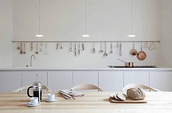 Keukengereedschap mag weer gezien worden, vooral met de mooie spullen die tegenwoordig te koop zijn. Prachtige houten opscheplepels, mooie garden of een emaillen vergiet: het mag allemaal gezien worden. Geef deze items een prominente plek in jouw keuken en hang ze op aan een wandrek. Hierdoor heb je de spullen ook nog eens voor het grijpen.