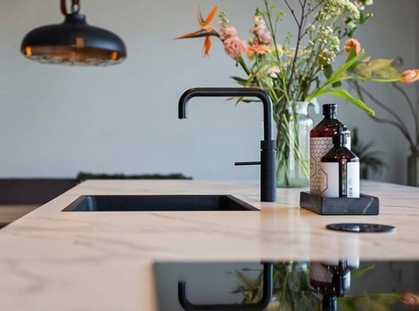 Een zwarte spoelbak, een zwarte kraan en grote zwarte grepen: dit jaar is zwart niet te missen in de keuken. Overal mag het terugkomen en het geeft jouw keuken een stoere en industriële uitstraling. Daarnaast combineert het prachtig met diverse materialen en kleuren.